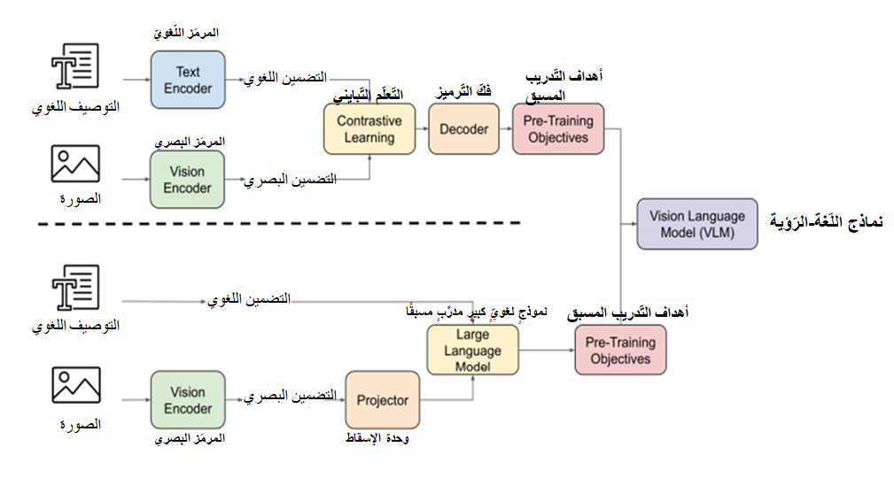 وعلى الرّغم من هذا التّقدّم اللّافت، فإنَ نماذج الرّؤية-اللّغة القائمة اليوم تتباين بشكلٍ كبيرٍ في بنيتها وإمكاناتها؛ ويعود ذلك إلى اختلاف نوعيّة البيانات المستخدمة في تدريبها وتنوّع آليّات ترميز الصّور، الأمر الّذي ينعكس بدوره على مستوى أدائها وعمق قدراتها عبر مختلف السّيناريوهات التّطبيقيّة .[2]