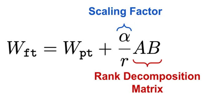 بمجرّد اشتقاق التّحديث منخفض الرّتبة لمصفوفة الأوزان، نقوم بالتّوسيع بواسطة عامل قياس (α) قبل إضافته إلى أوزان النّموذج المدرّبة مسبقًا كما هو موضّحٌ أدناه. يمكن تغيير قيمة α لتحقيق التّوازن بين أهمّيّة أوزان النّموذج المدرّب مسبقًا والتّكيّف الجديد الخاصّ بالمهمّة المحدّدة.[1]