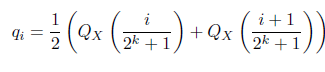إنّ الصّيغة التّالية تقوم بحساب مستويات التّكميم لتوزيعٍ طبيعيٍّ من خلال متوسّط القيم الكمّيَة. [5]