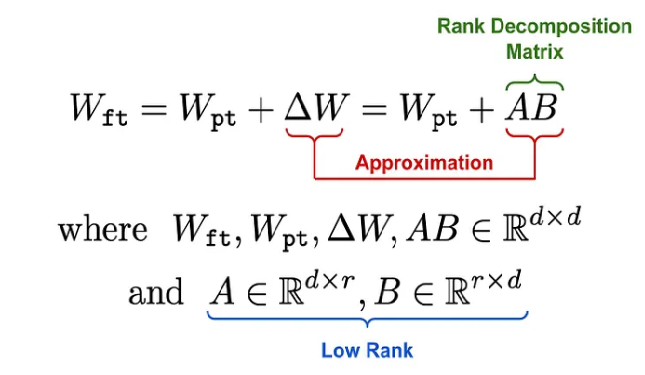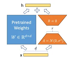 حيث لدينا: r الرّتبة (r ≪ min (d, k ،عادةً تكون قيمها بين 1-64؛ للحفاظ على قيم المعاملات القابلة للتّدريب صغيرًا.