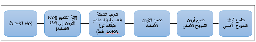 وبعد انتهاء التّدريب، يتمّ دمج الأوزان المدرّبة من لورا مع الأوزان الأصليّة في النّموذج، ممّا يتيح للنّموذج أداء المهام الجديدة بكفاءةٍ دون الحاجة لتعديل جميع المعاملات الأصليّة.