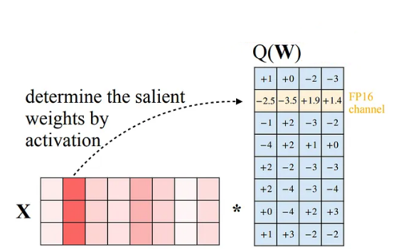 ثانيًا: تعتمد آلية العمل على مسارين رئيسيين؛ إذ تُحدَّد مجموعةً صغيرةً من الأوزان البارزة Salient weights قرابة 1٪ لتُحفظ بدقّةٍ أعلى مثل تمثيل عائم عشريّ FP16 لضمان الدقّة، بينما تُكمَّم بقية الأوزان بدقّات أقل.